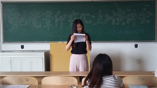 下午4:20,演讲会正式开始。陈兆倩主持此次演讲会,张胜超,李明婉,魏树云,邱静静,靳荣珠,张雪,汪琦以及玄晓阳等同学依次进行演讲,他们表达了自己对于党章的热爱以及为人民服务的决心,并表示要时刻把党章放在心上,严于律己,在党的带领下全心全意的为人民服务。最后,周莹莹老师总结发言,宣布演讲会圆满结束!