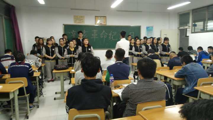 10月10日晚,在辛亥革命胜利105周年之际,为贯彻深化团支部育人工作精神,提高学生思想政治素质、营造良好的育人环境氛围。机械与工程学院团总支学生副书记张强带领15级工业设计班红歌合唱团在2号综合楼面对15级各班级展开团支部育人活动。该院团总支学生副书记杜桂钰、史成保及15级各班团支书参与了本次活动。