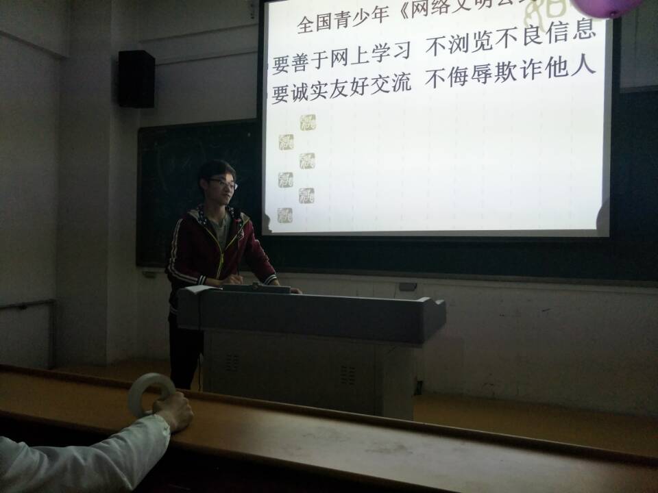 举办这次班会是为了宣传心理知识,培养同学们心理健康的一个活动,这次活动由心理部张勇为主持开展,活动中分别由三个班级的两名心理联络员展开有关网络方面的知识的传播,每位联络员都上台讲述了有关网络方面的知识以及自己的看法,阐明了网络健康的重要性。