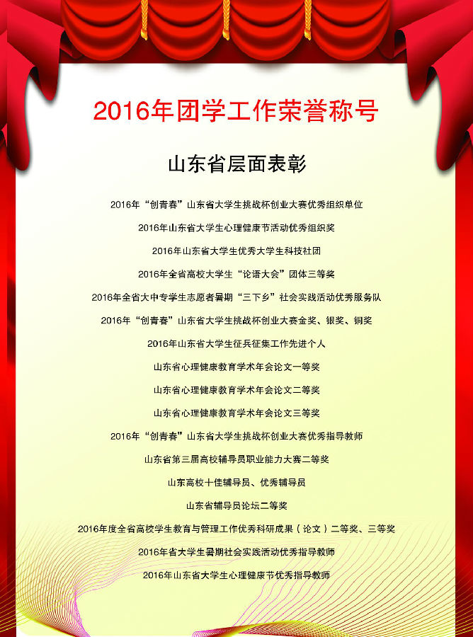 【校园热点】泰山学院2016年团学工作荣誉称号――省级层面表彰