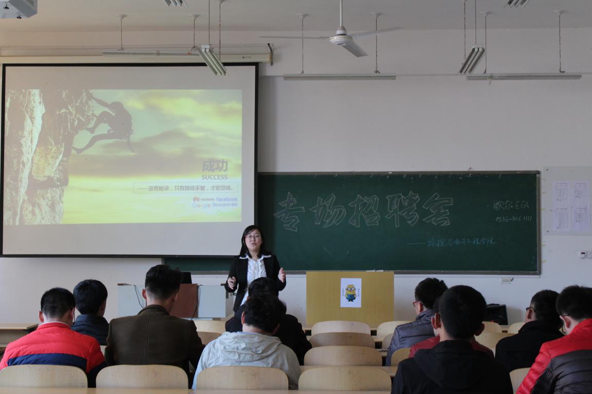 3月3日,物理与电子工程学院在二号综合楼A3015举办潍坊歌尔专场招聘会。歌尔公司人力资源部代表主持了此次招聘会。物理与电子工程学院14级通信工程班学生参加了此次招聘会。