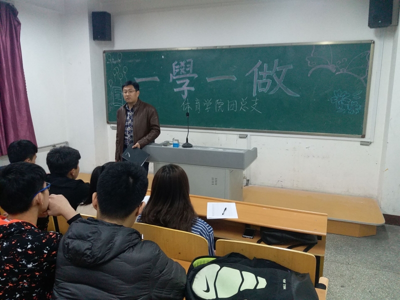 3月14日,体育学院在南校区综合楼B410举行了就习近平系列讲话开展了以学习“一学一做”为主题的例会,参加例会的人员有体育学院贾效强书记,黑烁助理辅导员以及体育学院学生会全体成员。