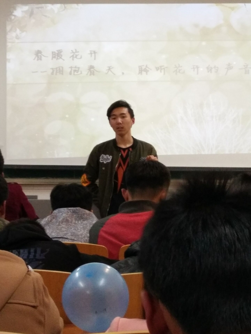 3月21日晚,信息科学技术学院在南校区综合楼B702举办“春暖花开”主题活动。此次活动由泰山学院大学生心理健康委员会主办,信息科学技术学院团总支承办,该院2016级软件工程专业全体学生参加了此次活动。