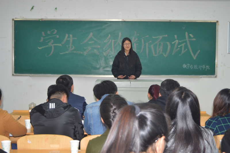 为了继续提高数学与统计学院学生会的工作效力,促进学生会工作顺利。2017年3月17日6.30,我院于南校区A602再次召开16级学生会纳新大会。辅导员韩影老师朱峰老师,学生会副主席刘浩出席,学生会部分成员以及面试竞选学生参加此次大会。