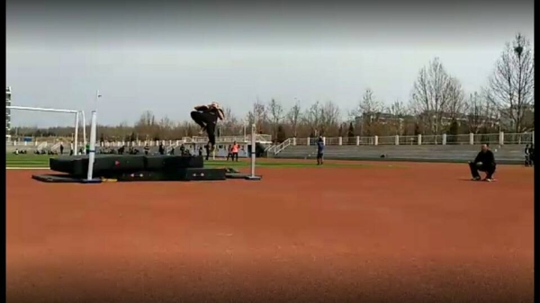 4月7日泰山学院体育学院在南校区操场举行田径跳高考试,跳高面向体育学院体育教育专业四个班级。