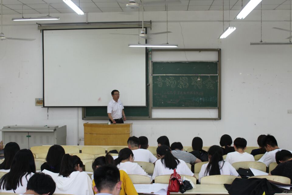 一季闻花,一季听雨,又到一年毕业季。6月1日,物理与电子工程学院特邀山东晶泰星光科技有限公司和上海永芯电子科技有限公司及上海音达科技有限公司在二号综合楼五楼向应届毕业生召开专场招聘会。本次招聘会由以上两个公司的负责人主持召开,物理与电子工程学院2013级电子信息科学与技术一班、三班和通信工程班以及2014级应用电子班全体同学参加了此次招聘会。