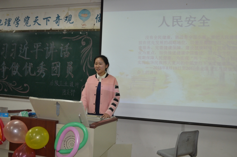 在各班团支书的带领下,团员们首先认真学习了团中央关于《共青团中央在全团开展“学习总书记讲话 做合格共青团员”教育实践的通知》和《关于在全校共青团员中开展“学习总书记讲话 做合格共青团员”教育实践的通知》,对团中央和校团委的有关精神进行了传达,明确了以“学习总书记讲话,做合格共青团员”为主题,以迎接党的十九大胜利召开为主线,以保持和增强政治性、先进性、群众性为根本目标,以增强团员先进性和光荣感为着力点的“一学一做”指导思想。随后,各班团支部通过知识竞答、团干部代表发言、观看习总书记系列讲话视频等方式开展了“一学一做”主题团日活动,以此加强支部共青团员对习总书记系列重要讲话精神和治国理政新理念新思想新战略的理解,使支部团员在理论学习上得到提升,并积极鼓励引导全体团员自学与集体学习相结合,进一步凝聚团员学生的青春力量,提高学习教育实效。