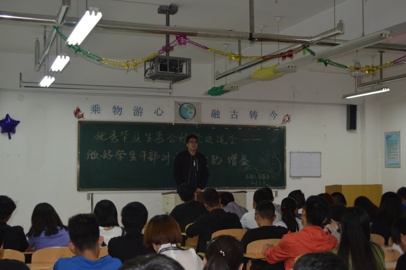 5月8日晚,机械与工程学院在南校区综合楼A408举办了题为“做好学生干部对考公的增益”的优秀毕业生考公经验交流会。本次交流会邀请了信息与科学技术学院优秀毕业生朱海涛为该院2016级全体学生干部、校自律会学生干部共100余人分享经验,答疑解惑。