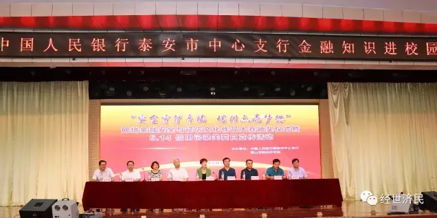 6月14日下午,经济学院在南校区大学生活动中心举行网络金融安全与征信文化作品大赛颁奖仪式暨6.14信用记录关爱日宣传活动。中国人民银行泰安市中心支行相关领导、泰山学院学生工作处、南校区管委会、经济学院负责人,教师代表、获奖学生和经济学院大一全体学生参加了活动。