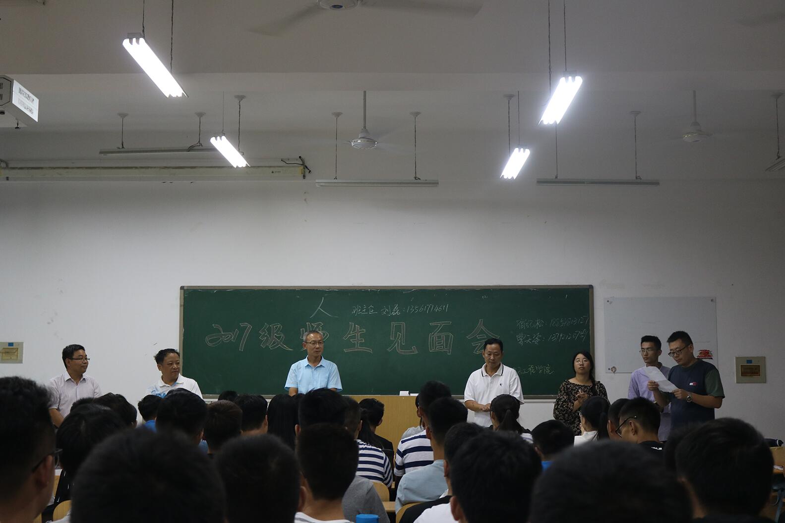 9月20日晚上7:30,物理与电子工程学院在二号综合楼三楼各班级召开2017级师生见面会。首先由2017级各班班主任老师向同学们介绍前来的领导老师们,他们分别是该院党总支书记李春海老师,胡承忠院长,院长助理陈君老师,团总支书记高峰老师,团总支辅导员刘明琦老师和胡适老师。