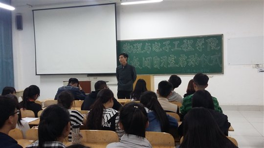 5月9日,物理与电子工程学院在二号综楼A3013举行“样板间自习室启动仪式”。物理与电子工程学院团总支辅导员原峰和该学院优秀学生参加了此次活动。