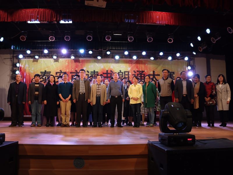 4月15日下午,由泰安市文化广电新闻出版局主办,泰安市文化艺术中心、泰安市图书馆、泰山学院文学与传媒学院承办,山东新华书店集团泰安分公司协办的第五届泰安市读书朗诵大赛决赛在泰山学院音乐厅圆满落幕。泰安市文广新局党委员、文化艺术中心主任王广尧、泰安市图书馆副馆长马仁勇、山东新华书店集团有限公司泰安分公司副经理陈云峰等领导出席了本项赛事。泰山学院宣传部、学工处等部门主要负责人与文学与传媒学院学院 200余名师生共同观看了此次比赛。