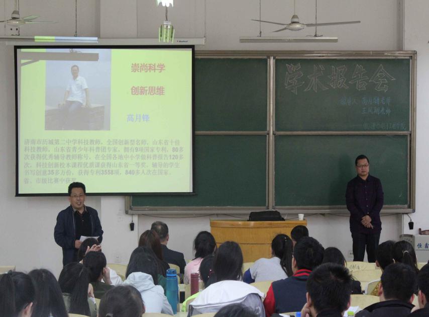 4月18号下午2:30,物理与电子工程学院在二号综合楼A5009召开学术报告会。会议旨在向同学们介绍关于科技创新的教育实践与思考。本次报告会由该院李峰院长主持,由济南市历城第二中学科技教师高月锋老师和山东建筑大学王凤翔教授主讲。物理与电子工程学院15级,16级物本班部分学生参加了此次会议。