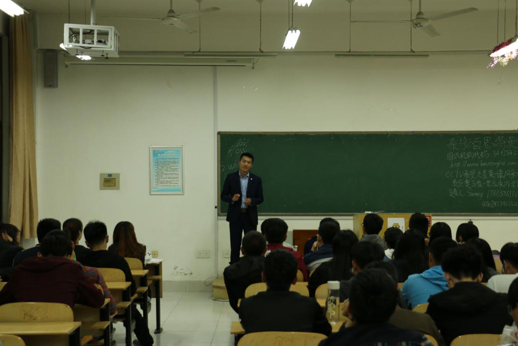 宣讲会首先由老师进行自我介绍,然后正式开讲。本次会议主要分为三个主题,老师分别从“如何学好英语”、“为什么要学英语”以及“怎样才能学好英语”三个方面向同学们做了详细而又生动的解说。其中,老师亲身示范四六级英语听力的语速和节奏,得出“要学好英语口语首先要学会连读”的结论,并且为同学们分析出听力的易错点在于我们当前学习的仅仅是英式发音,但是我们更需要学会美式发音,老师的分析使同学们深受裨益。而且,老师也对学好英语总结了一个全新的方法:学英文需要正确的方法和团队。并请出一位经过团队学习的同学现场向同学们分享了她的故事,同学们听后赞叹不已,深受启发。