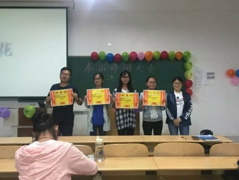 “华夏文明,璀璨夺目。诗词歌赋,熠熠生辉。”为传承中华经典文化,提高同学们对古典诗词的感受能力与鉴赏能力,5月5日晚七点,化学化工学院“诗词大会”大赛在二号综合楼A2015举行。主席团成员张大川,社团部部长李孝庆、社团部副部隋凯龙等评委出席本次大赛。