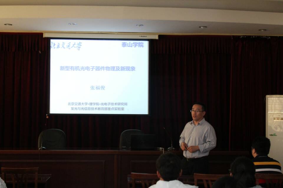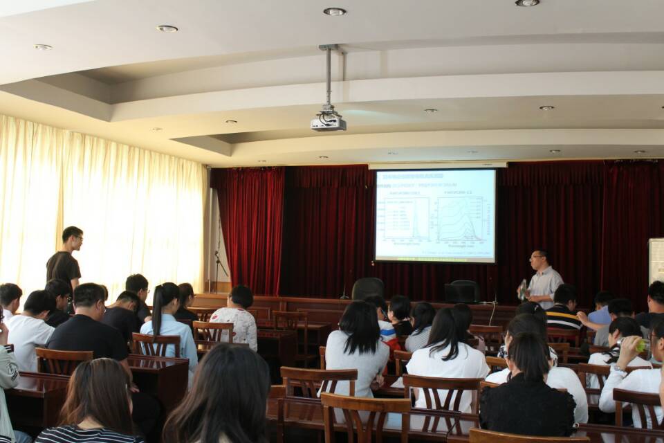 会议首先由李院长对特邀讲师进行身份介绍,然后由张福俊教授开始作报告。张教授首先向同学们汇报了他的主要研究工作,然后通过两个问题引入了对所研究的光电子器件的精彩介绍,他将其研究分为了三个代表性工作进行了报告,每项工作都充满探索性,而且通过研究所发表的论文有多篇被国外杂志引用。张教授报告完毕后,其学生安桥石博士和王文斌博士分别对自己设计的原件的工作原理、工作的切入点,工作的机理以及研究思路和在研究过程中遇到的问题做了详细报告。会议最后由王健老师对本次报告会进行总结,他对自己的研究经历和工作规划进行了深刻总结,并且对同学们未来的发展寄予厚望。