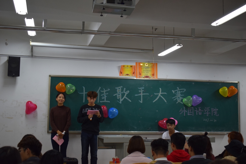 为了丰富学生校园文化生活,展现机汽学子青春风采,外国语学院于2017年10月20日晚上六点半,举办"激扬青春,梦想起航之唱响青春校园"十佳歌手大赛初赛。本次大赛的评委是外国语学院学生会成员。