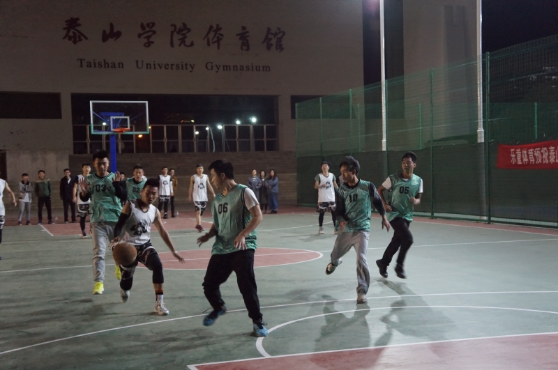 11月15日晚,生物与酿酒工程学院与数学与统计学院在文体馆前篮球场进行金秋体育节篮球赛对决。生物学院与数学学院各12人参加比赛。